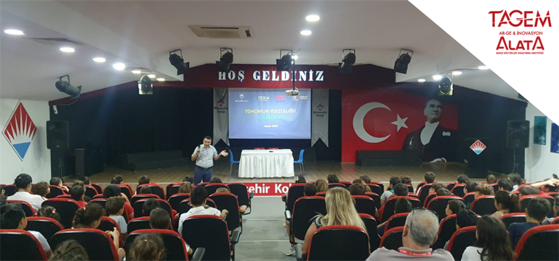 Özel Mersin Bahçeşehir Kolejinin “Tohumun İzinde" adlı projesi kapsamında 09 Ekim 2023 tarihinde Enstitümüz teknik elemanlarından Dr. Veysel ARAS tarafından Özel Mersin Bahçeşehir Koleji Toplantı Salonunda, 3. ve 4. sınıflara "Tohumun Yolculuğu" hakkında seminer verilmiştir.