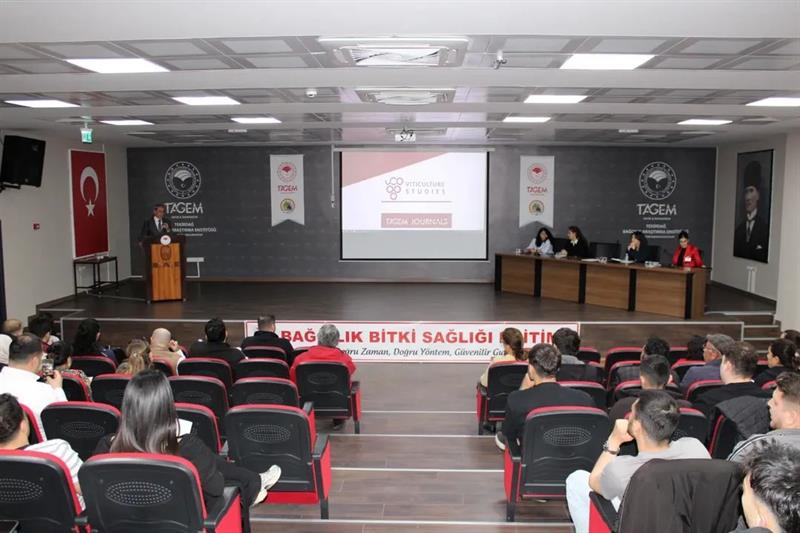 Kurumdaki konferans salonunda Enstitü Müdürü Mehmet Ali KİRACI’nın açılış konuşması ile başlayan eğitim programında uzman personelin sunuları ve ardından soru-cevap şeklinde gerçekleşen eğitimin yöre bağcılığı açısından etkin bitki koruma işlemlerine katkı sağlaması hedeflendi.