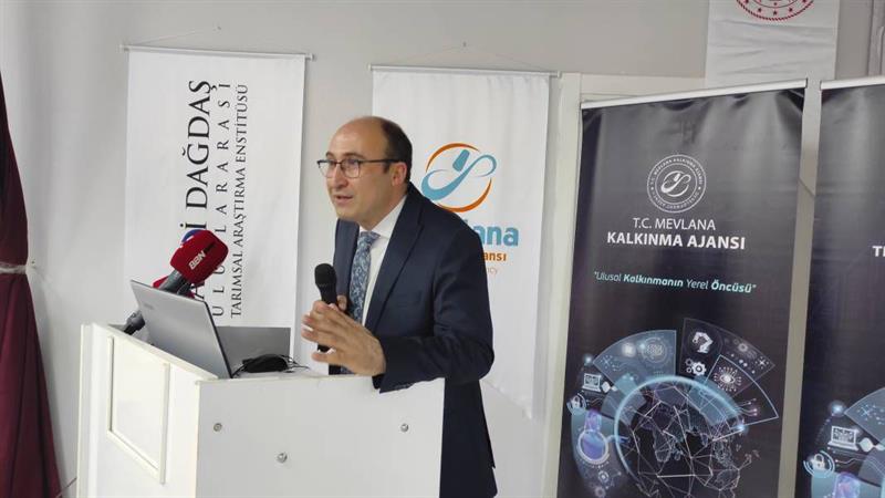Enstitü Müdürlüğümüz tarafından yürütülen ve Mevlana Kalkınma Ajansı’nın (MEVKA) desteklediği “Coğrafi İşaretli Hüyük Çileği’si”nin Üreticiler Üzerindeki Ekonomik, Sosyal ve Kültürel Etkilerinin Araştırılması Proje kapsamında bilgilendirme ve kapanış toplantısı Hüyük’te düzenlenmiştir. Toplantıya, Hüyük Kaymakamı Muhammed Ebrar Evsen, Hüyük Belediye Başkanı Dr. Sadık Sefer, Mevka Genel Sekreteri Dr. İhsan Bostancı, Hüyük Tarım ve Orman İlçe Müdürü Mevlüt Sarı, Konya Toprak Su ve Çölleşme ile Mücadele Araştırma Enstitüsü Müdürü Dr. Cihan Uzun, Konya Ziraat Mühendisleri Odası Başkanı Burak Kırkgöz, Hüyük Ziraat Odası Başkanı Ertuğrul Zedef, Çilek Üreticileri Birliği Başkanı Mehmet Bilgi, Konya Cumhurbaşkanlığı İletişim Bölge Müdürlüğünden Şube Müdürü H. Rahmi Dalmaç, Alata Bahçe Kültürleri Araştırma Enstitüsünden Uzman Dr. Kader Erçik ve enstitümüz araştırmacıları katılmıştır. Enstitü Müdürümüz İlker Topal’ın açılış konuşması ile başlayan toplantı, protokol konuşmaları ile devam etmiştir. Projenin sonuç raporunun sunumu ve çilek panelinin ardından toplantı tamamlanmıştır. Projenin tamamlanmasında emeği geçen proje ekibine teşekkür ederiz.