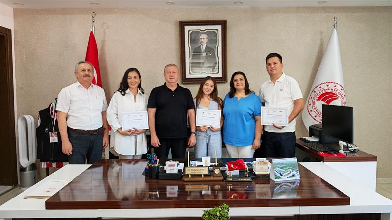 BATEM koordinasyonunda, 19-24 Haziran 2025 tarihleri arasında gerçekleştirilen teknik gezi kapsamında Kazakistan Bitki Koruma ve Karantina Araştırma Enstitüsü yetkilileri, Enstitümüzü ziyaret ederek yürütülen çalışmalar hakkında bilgi aldı. Ziyaret kapsamında karşılıklı bilgi alışverişinde bulunuldu ve olası iş birliği konuları üzerine görüşmeler gerçekleştirildi. Eğitim programını tamamlayan Kazakistan Bitki Koruma ve Karantina Araştırma Enstitüsü heyetine, sertifikaları Enstitü Müdürümüz Dr. Abdullah ÜNLÜ tarafından takdim edildi.