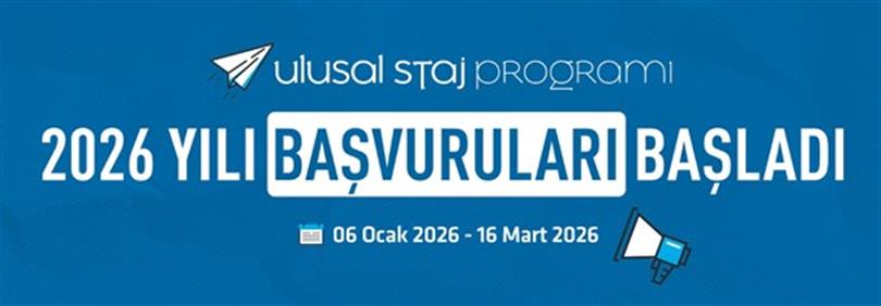Bakanlığımız birimlerinde 2026 yılında staj yapmak üzere Ulusal Staj Programı üzerinden ön lisans ve lisans öğrencileri kabul edilecektir.