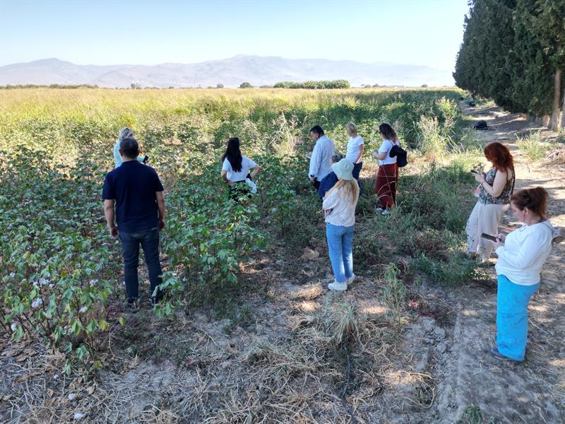 Etkinlikte, onarıcı organik tarım kapsamında uygulanan yöntemler ve elde edilen ilk sonuçlar katılımcılara yerinde aktarıldı. Proje ortakları, sürdürülebilir pamuk üretimi ve tarımsal ekosistemlerin iyileştirilmesine yönelik çalışmalar hakkında bilgi paylaşımında bulundu.