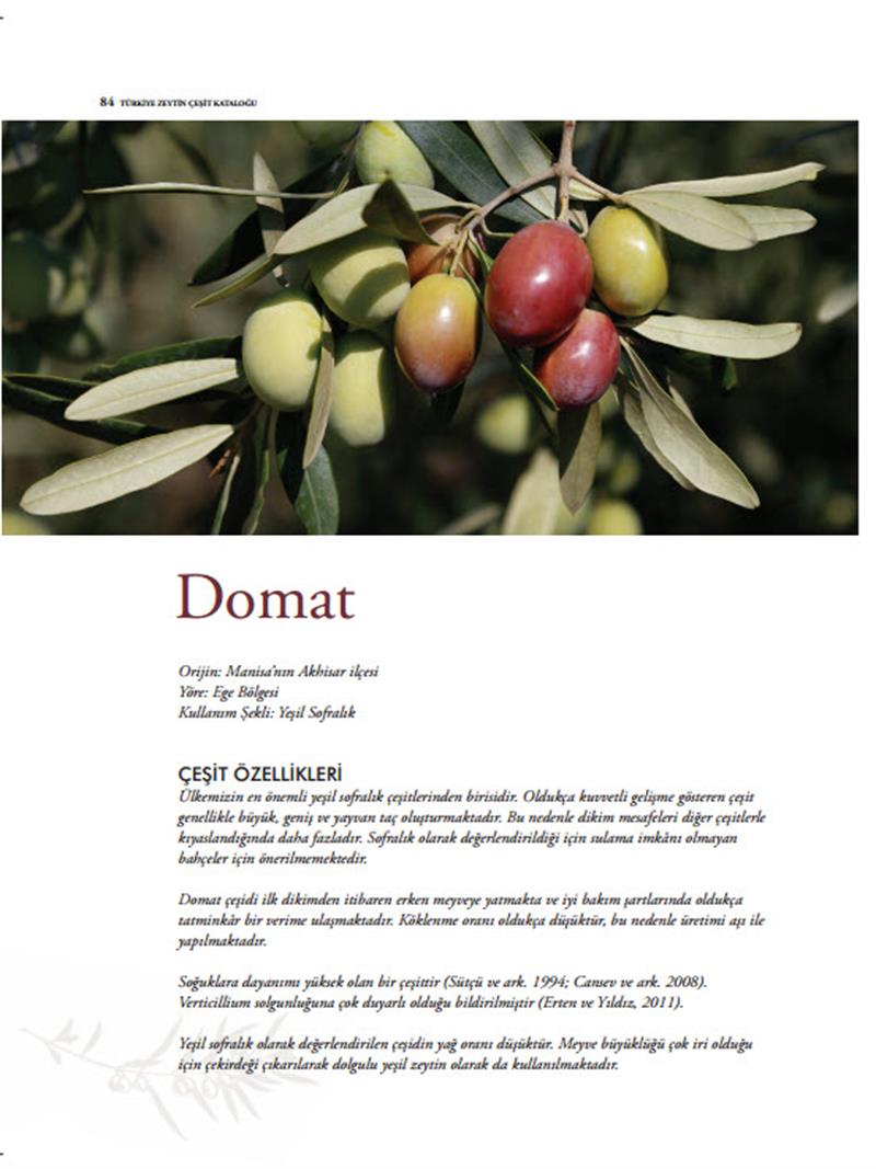 Uluslararası Zeytin Konseyi-Madrid'e sunulan "Catalogue of Turkish Olive Varieties" Teknik Hibe Projesi kapsamında hazırlanan, içerisinde tescil edilmiş 89 adet zeytin çeşidimizin agronomik, pomolojik, fenolojik ve teknolojik özelliklerinin bulunduğu resimli katalog yayınlanmıştır.
