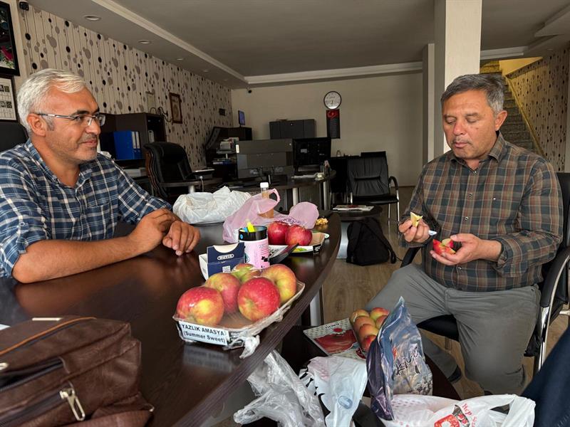Doç. Dr. Emel KAÇAL ve Ziraat Yüksek Mühendisi Turgay SEYMEN tarafından 20-21 Ağustos 2025 tarihlerinde Konya ili Ereğli ilçesi, Niğde ili Çamardı ilçesinde ve Karaman ilindeki üreticiler ve ihracatçılar ile buluşturulan ümitvar genotiplerden biri, Amasya elmasının genetik mirasını taşıyor, daha erken hasat ediliyor ve lezzeti ile öne çıkıyor. Karaleke hastalığına dayanıklı çeşit adayı ise albenisi ve yeme kalitesi ile dikkat çekiyor.