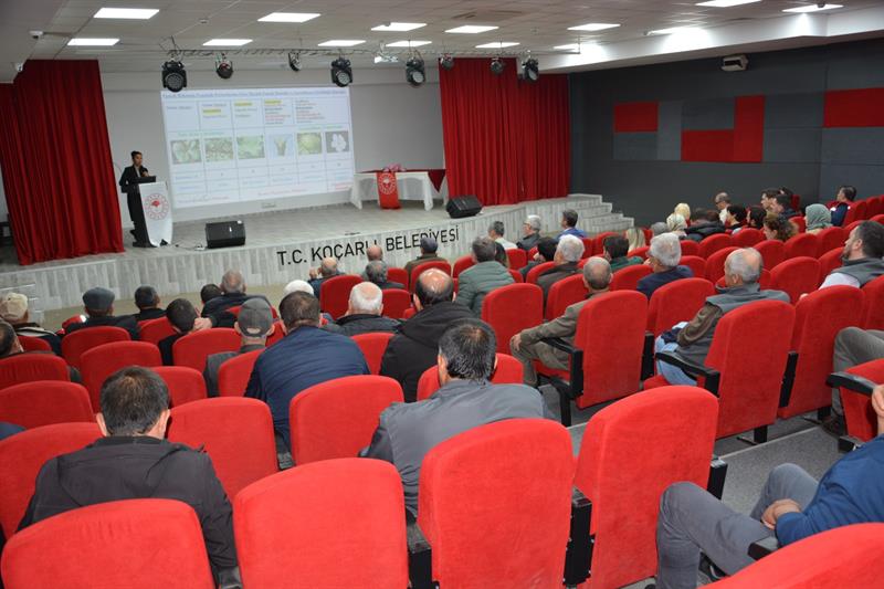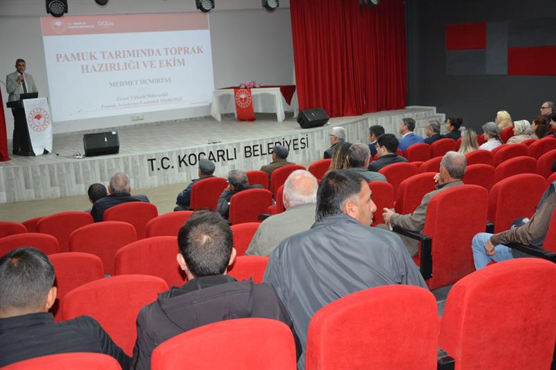 Enstitümüz ve Aydın İl Tarım ve Orman Müdürlüğü ile iş birliği içerisinde ilimizin önemli ürünlerinden birisi olan pamukta eğitim çalışmalarımıza başladık. Pamuk üretiminde önemli bir yere sahip olan ilçelerimizden birisi olan Koçarlı ilçemiz çiftçi eğitimlerimizin ilk durağı oldu. 06.04.2026 tarihinde gerçekleştirdiğimiz Çiftçi Eğitim Toplantısına; İl Müdürümüz Sayın Ayhan TEMİZ, Koçarlı İlçe Müdürümüz İbrahim SELLİ, Bitkisel Üretim ve Bitki Sağlığı Şube Müdürümüz Armağan TANRIKULU, Koçarlı Ziraat Odası Başkanı Taner GÜNEŞ ve üreticilerimiz katılım sağladı.