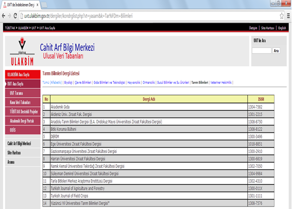 TARLA BİTKİLERİ MERKEZ ARAŞTIRMA ENSTİTÜSÜ DERGİSİ