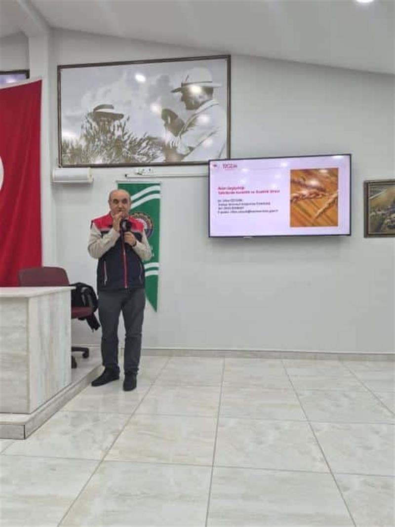 Uzman heyet tarafından gerçekleştirilen sunumlarda, bölgenin en stratejik tarımsal ürünleri olan buğday, arpa ve ayçiçeği yetiştiriciliği kapsamlı bir şekilde ele alındı. Özellikle son yıllarda tarımı derinden etkileyen iklim değişikliğine vurgu yapılarak; doğru tarla bitkileri yetiştiriciliği teknikleri, kuraklık ve yüksek sıcaklık stresinin bitki verimi üzerindeki olumsuz etkileri ile bu iklimsel zorluklara karşı sahada uygulanabilecek pratik çözüm önerileri ve alınması gereken tedbirler üzerinde duruldu.